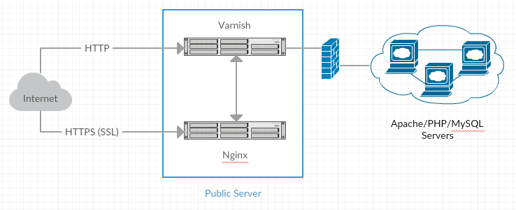 If you're interested You can see on github the bolerplate for our varnish congifuration, and here below a simple schema of our network, as you can see it's nothing crazy, just an usual setup.